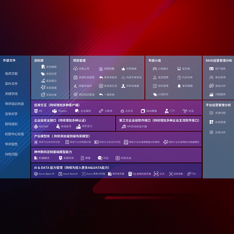 医疗器械产品上市前,,,,要熟悉严格与繁复评审标准,,,整理分析监管机构指导文件中的海量信息。。企业急需一个智能化解决方案,,提升知识管理效率,,,,提高评审通过率,,,,以提升其市场竞争力。。。